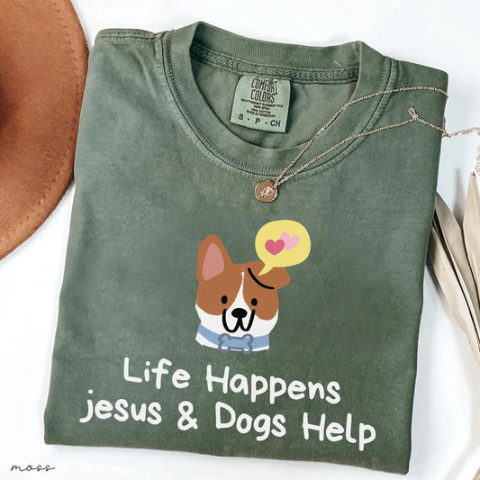 Life Happens Jesus and Dogs Help Funny Tee